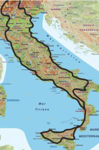 Entlang des Mittelmeeres nach Rom und dann nach Neapel.